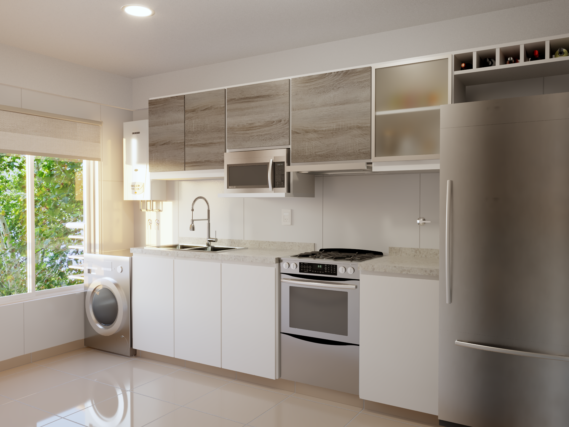 - Cocina independiente amplia con interiores equipados y conexión lavarropas